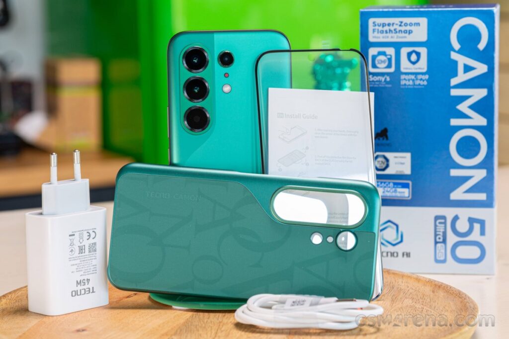 The Camon 50 Ultra is powered by a 6,500mAh battery with 45W fast wired charging. The phone boots Android 16 with HiOS 16, and it has been promised three major updates.